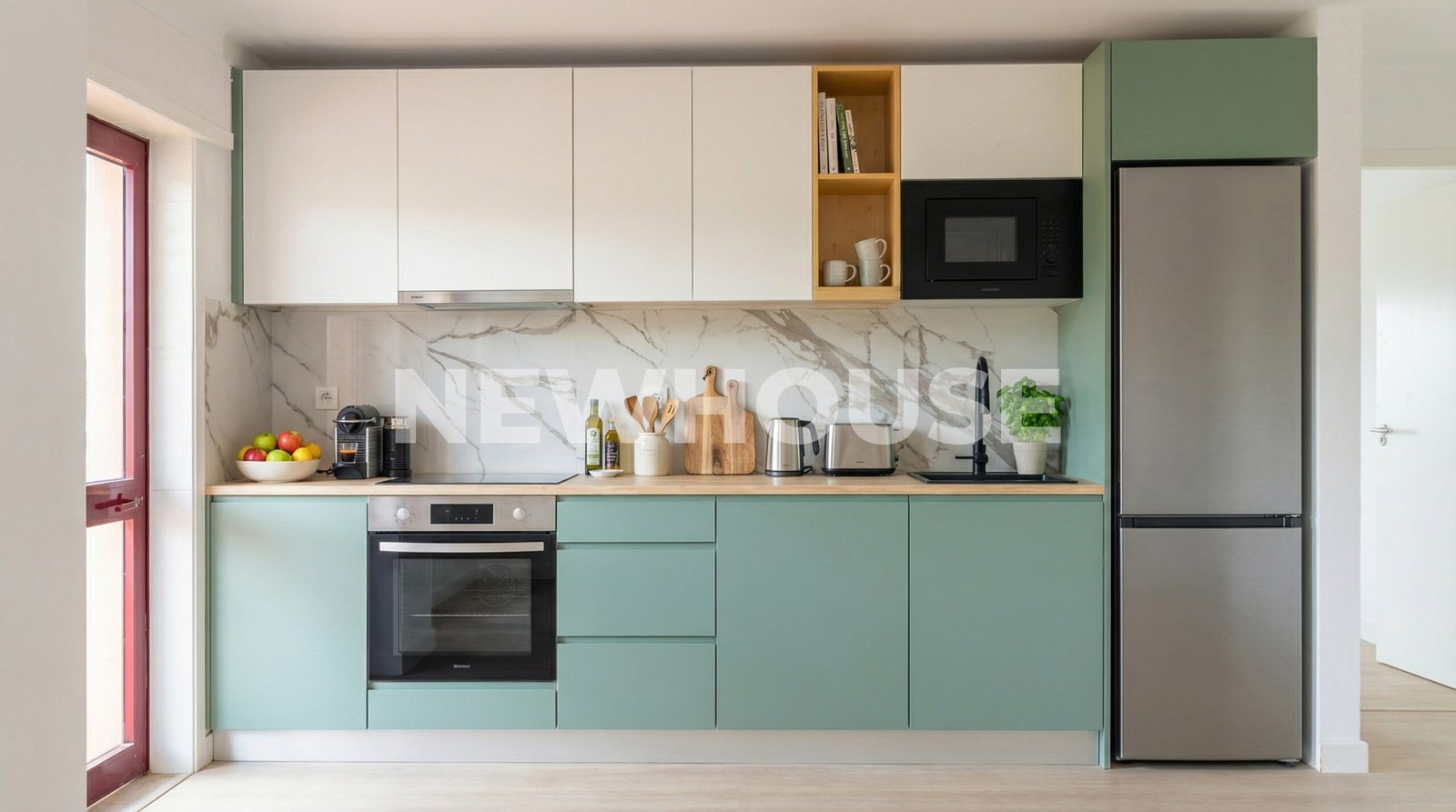 A área social destaca-se pela sala e cozinha em open space, criando um ambiente moderno, prático e acolhedor. Esta zona oferece uma vivência mais fluida e atual, ideal para o dia a dia e para momentos de convívio. A cozinha encontra-se equipada com placa, forno, exaustor e micro-ondas, reunindo funcionalidade e simplicidade num espaço bem aproveitado.
