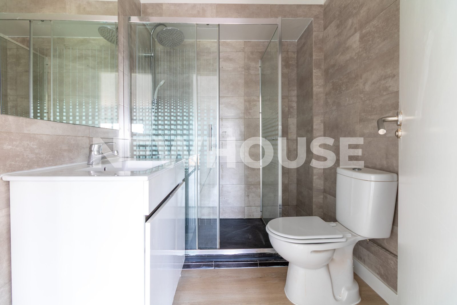 A casa de banho completa com base de duche apresenta uma solução prática e contemporânea, alinhada com o perfil moderno do imóvel.